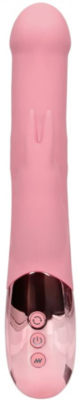 Ярко выраженная головка вибратора точечно воздействует на G-зону, блок металлических шаров в стволе интенсивно ласкают стенки лона при вращении, а клиторальный стимулятор в виде зайки с ушками значительно увеличивает накал страсти, работая снаружи!